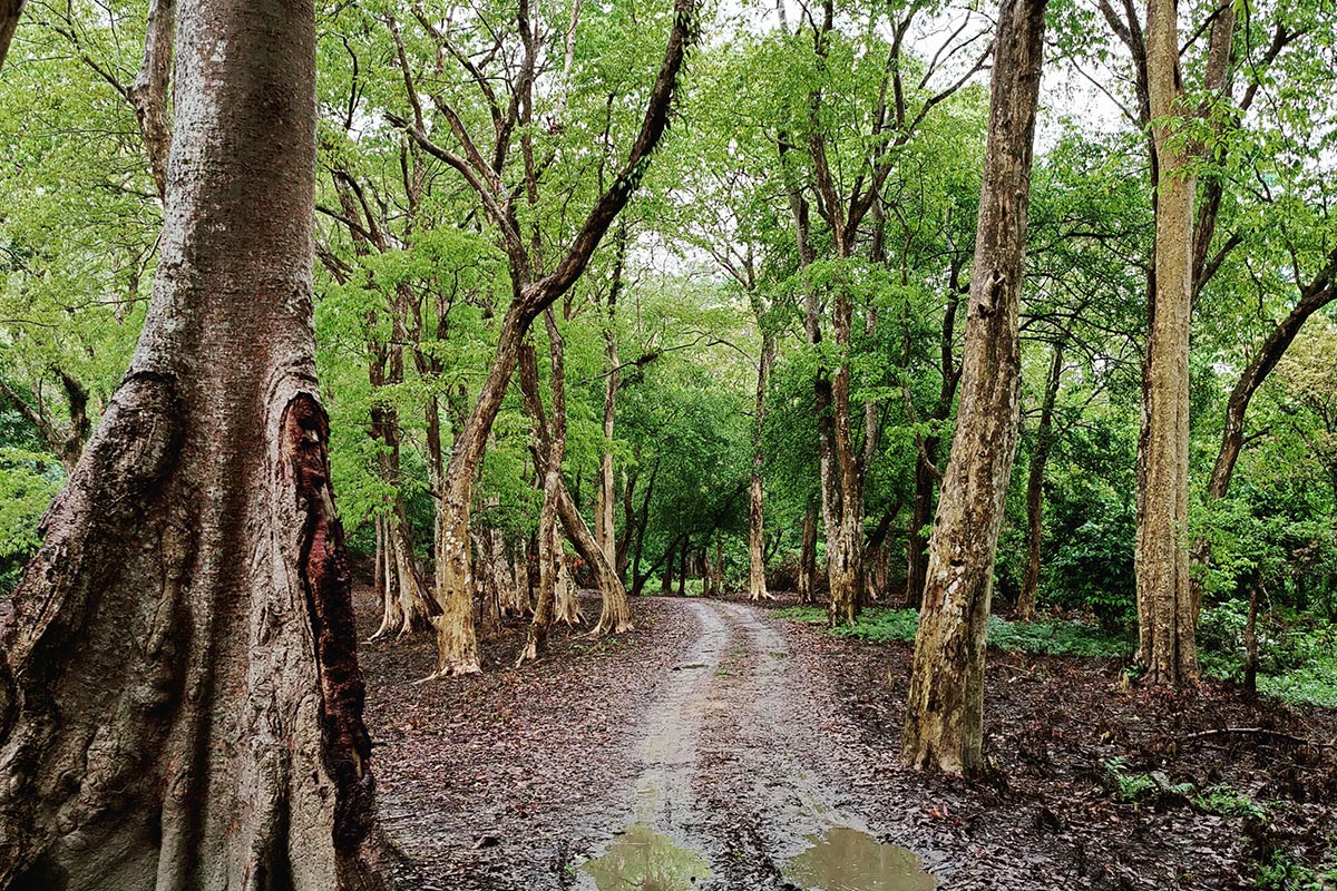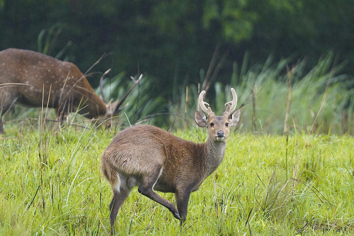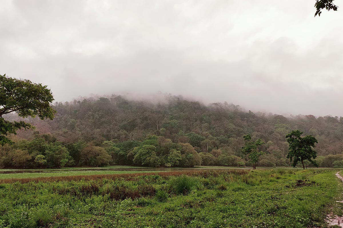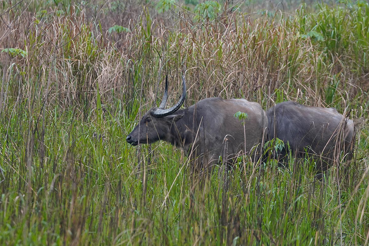 Awoke early the next morning after a long night, with the electricity having gone off and mosquitos ravaging one up. However, it was all forgotten as soon as one got out and started driving across the emerald green tea estates and forests that responded with even greater resplendence under the heavy rain clouds. Burapahar Range was 40km from Kohora, and a good hour long drive. The highway being elevated allowed one to constantly look into the floodplains and catch glimpses of One-horned Rhinos, Wild Buffalo, Hog Deer and a host of birds like Egrets and Herons in the wetlands, while the dense hill forests of the Karbi Anglong kept their mysteries under cloak with the misty fog of moisture.