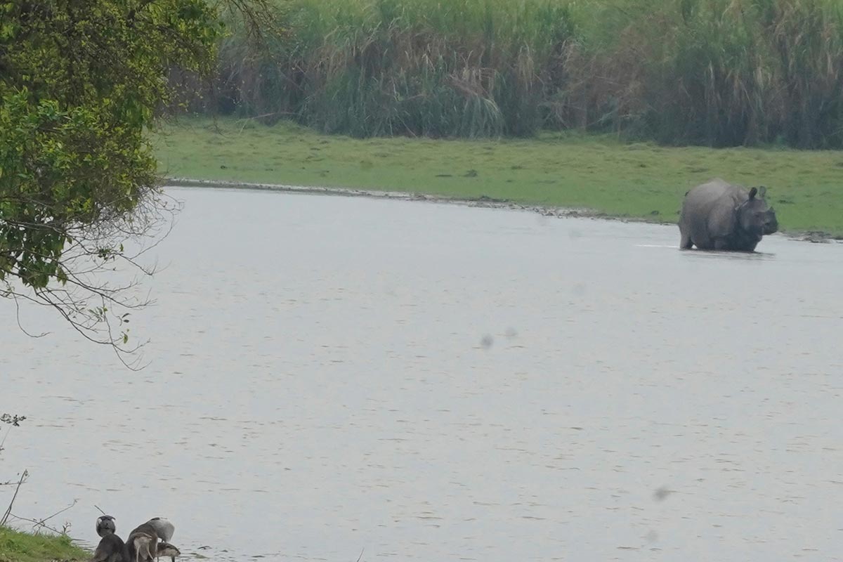 The Floricans remained elusive today, but there were plenty of One-horned Rhino, Wild Buffalo, Swamp Deer and Hog Deer to be seen. The skies cleared an hour later as we reached further inside and then spent the rest of the afternoon on a track separating 3 Grasslands as there were intermittent alarm calls of Hog Deer signaling the movement of a tiger in the grass. At one point we an angry set of grunts from a Rhino within the tall grass set our senses on further alert to a possible appearance and crossing of the tiger. However, when a figure did appear 20 min later, it was the dark grey armour of the rhino itself as it now calmly foraged for food and nourishment. We didn’t see a tiger that afternoon, but the anticipation of it’s appearance, all the while knowing of it’s presence close by took one back to the pleasures derived from patiently listening to the wilderness and enjoying the messages it sends to you. Our evening winded down outside as we drove to check out a couple of lodges before treating ourselves to some fantastic Chicken Momos at a Dhaba where the seats were a mix of wooden benches and smoothened out tree stumps.