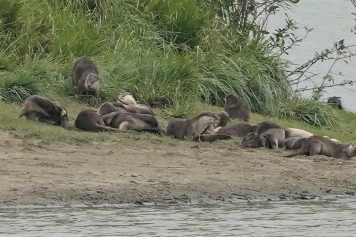 - Family of 18 Smooth Coated Otters observed hunting fish in the river channel for over an hour.