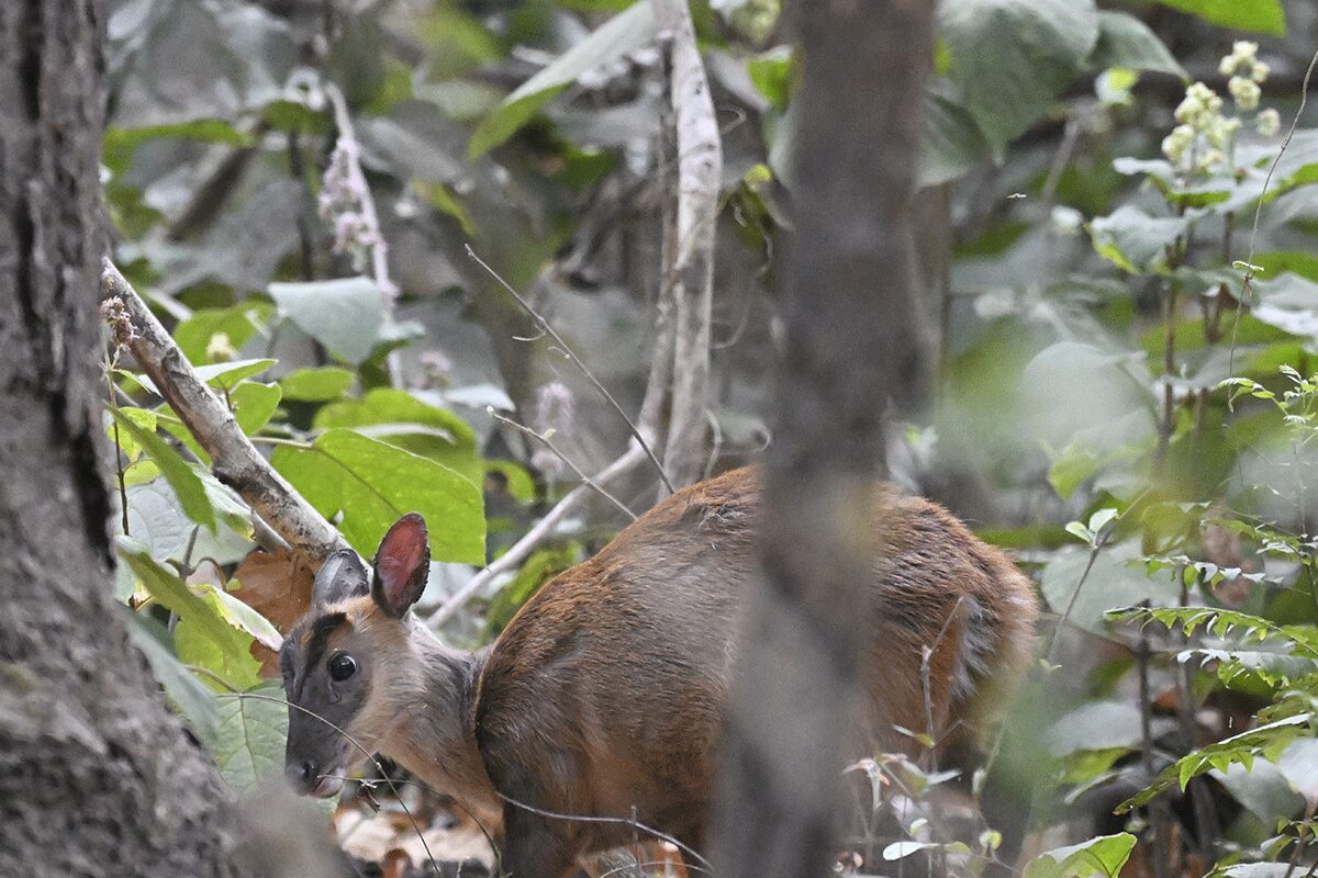 Another highlight was a surprise encounter with a pair of Spotted Deer Stags on the track in front of us as they alertly looked into the forest on the side. An alarm call from another unseen Spotted Deer and Barking Deer a few seconds later indicated the passage of a predator further in, with us stipulating it was most likely another Leopard.