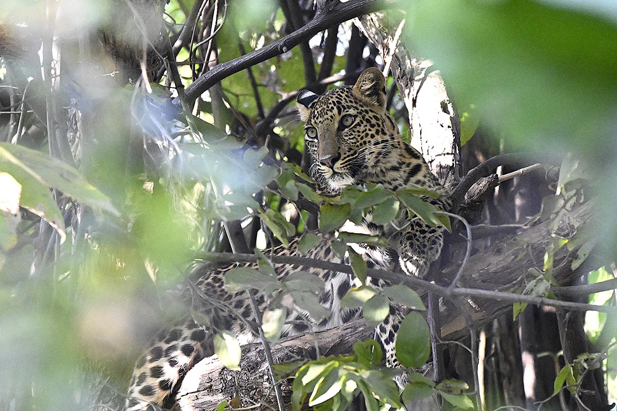 - Super 1 hr. long sighting of an Adult Female Leopard in a Tree near the banks of the Ken River