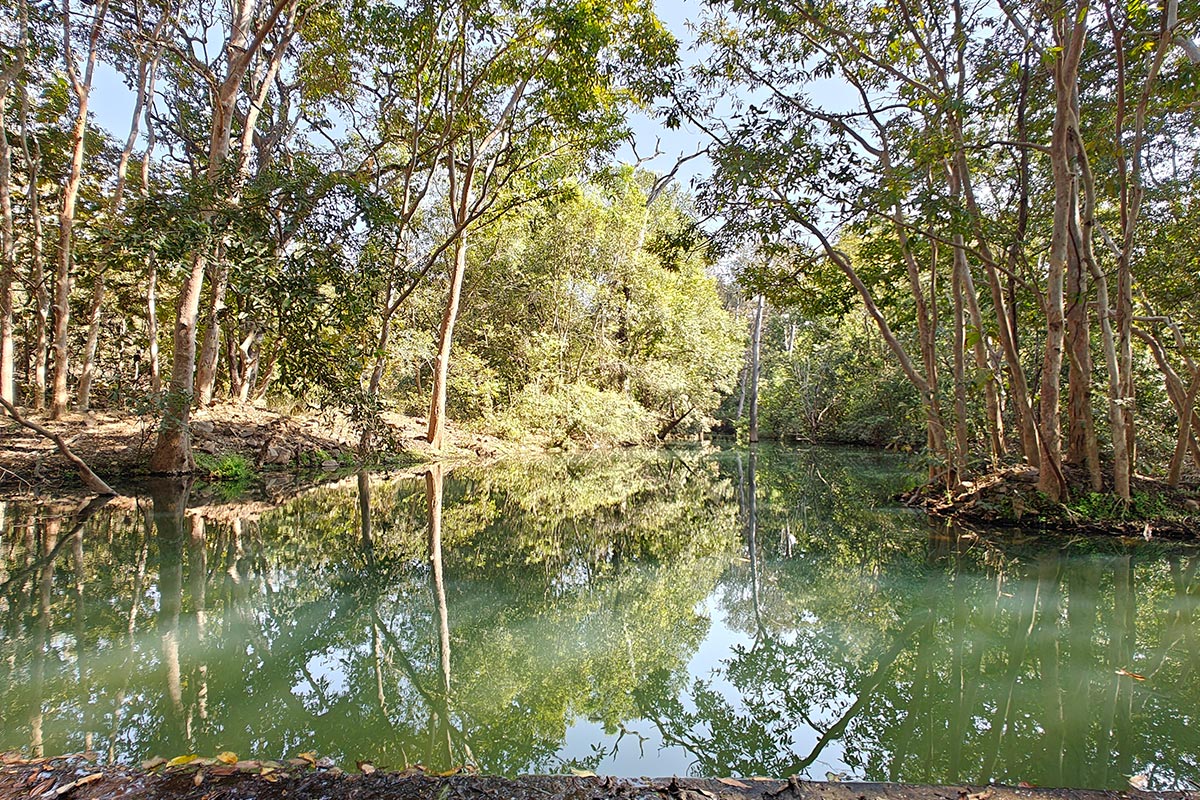 That afternoon we decided to go to the gate early, so we would be one of the first few jeeps at the site of the kill, and hopefully catch her and/or the cubs as they crossed to a nearby waterhole to cool off and drink water. It was our last safari, and so enjoying some ice cream at the gate before we entered helped cool us off as well. The early entry didn’t help our tiger cause however, as the afternoon heat had her probably sleeping in the shade somewhere inside near the kill. We decided we would go to Pipartola Grassland and enjoy a couple of hours there and the river views before coming back and trying for her and the cubs closer to the evening.