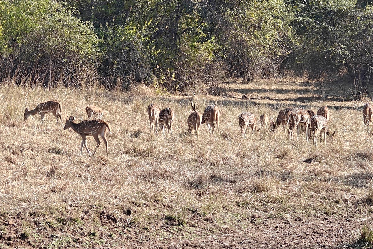 The Night Safari was a wonderful and new experience for the group as we got lucky with 5 Sloth Bears, but only counted the final two who we could see very clearly as we headed back out near the end. The other highlights were 3 different Common Palm Civets, an Indian Thicknee, and a Savanna Nightjar. The group also enjoyed their personal refreshments and snacks when we parked out in an open field under the moonlight and thus thoroughly enjoyed the experience even more. Good news awaited us once we got back from our Night Safari. We were informed by the lodge that our safari tickets from both Hinouta and Akola Core gates for the following morning had been shifted to Madla gate on account of a religious festival that was taking place at a shrine located in that part of the forest. The entire Hinouta plateau was closed for tourism the following day and hence we could sleep in for an hour longer and enjoy entry from the close by Madla Gate.