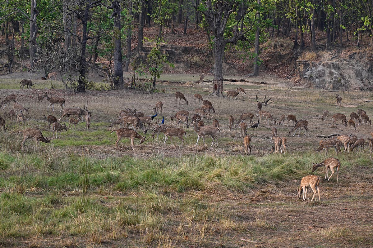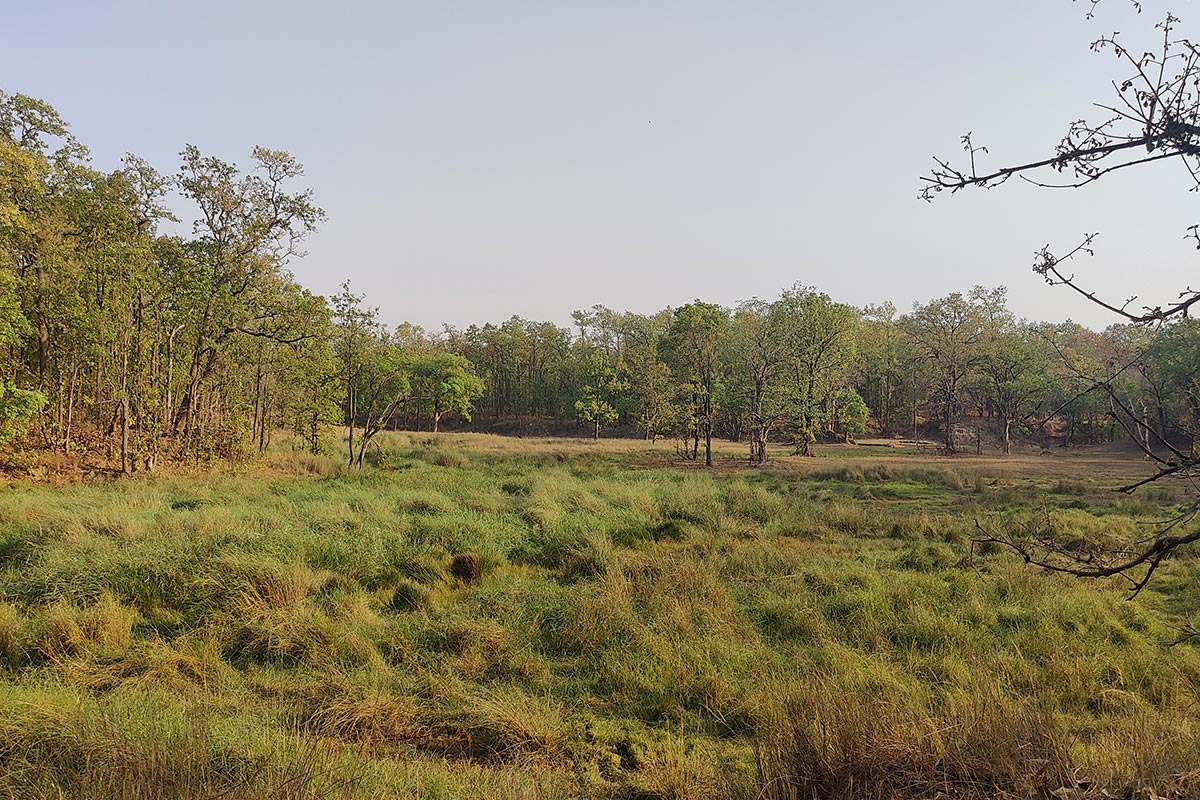 The grassy meadows and seasonal nallahs create ideal grazing grounds for Spotted Deer, Grey Langurs, Wild Boar, and Barking Deer, while the drier open patches attract Nilgai and Chinkara.